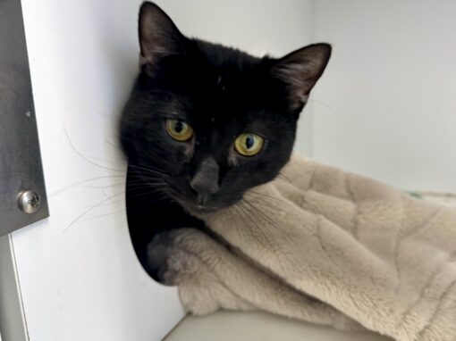 She’s under a year old, spayed, vaccinated, and ready for a home where she can settle in at her own pace.